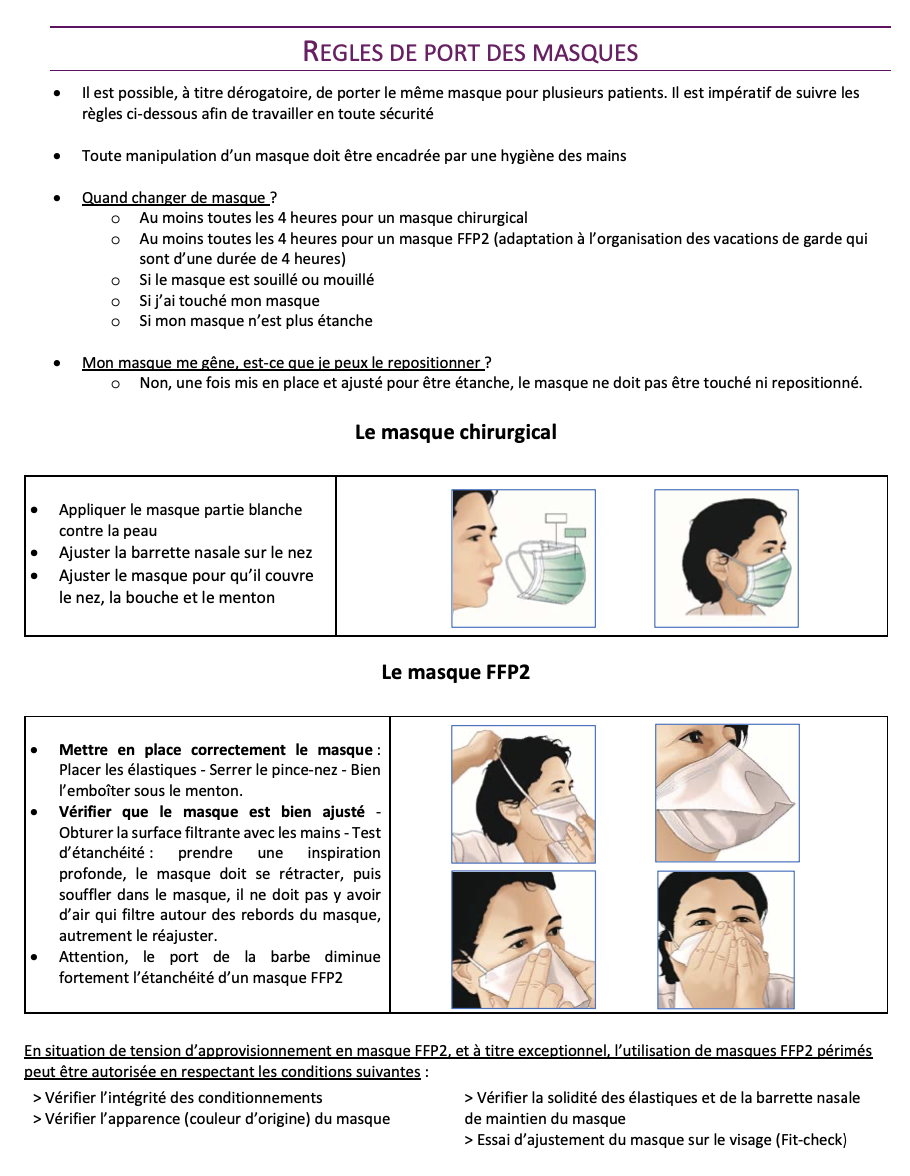 • Porter un masque avant d’entrer dans le cabinet (couvrant nez, bouche et menton)