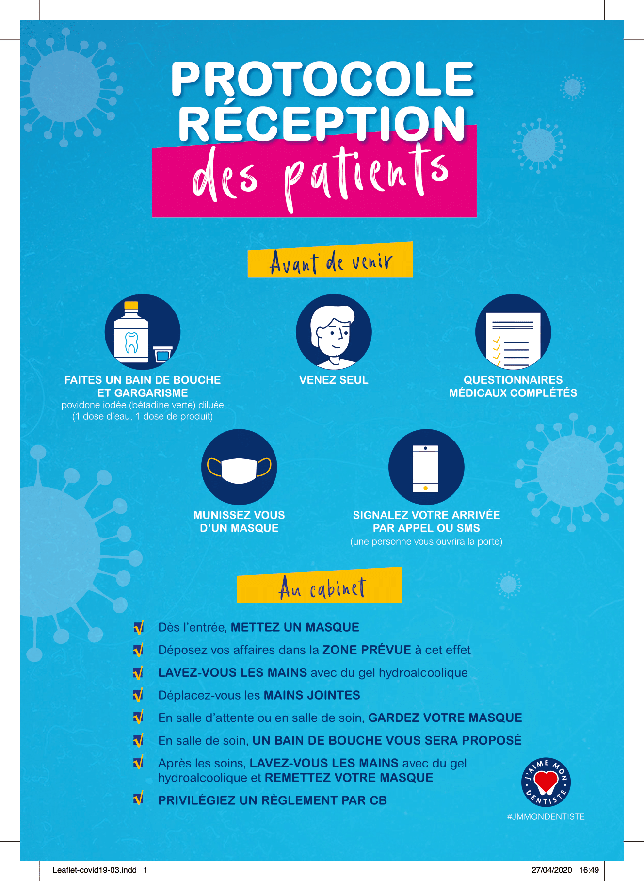 • Un protocole d’hygiène particulier sera appliqué à l’entrée du cabinet